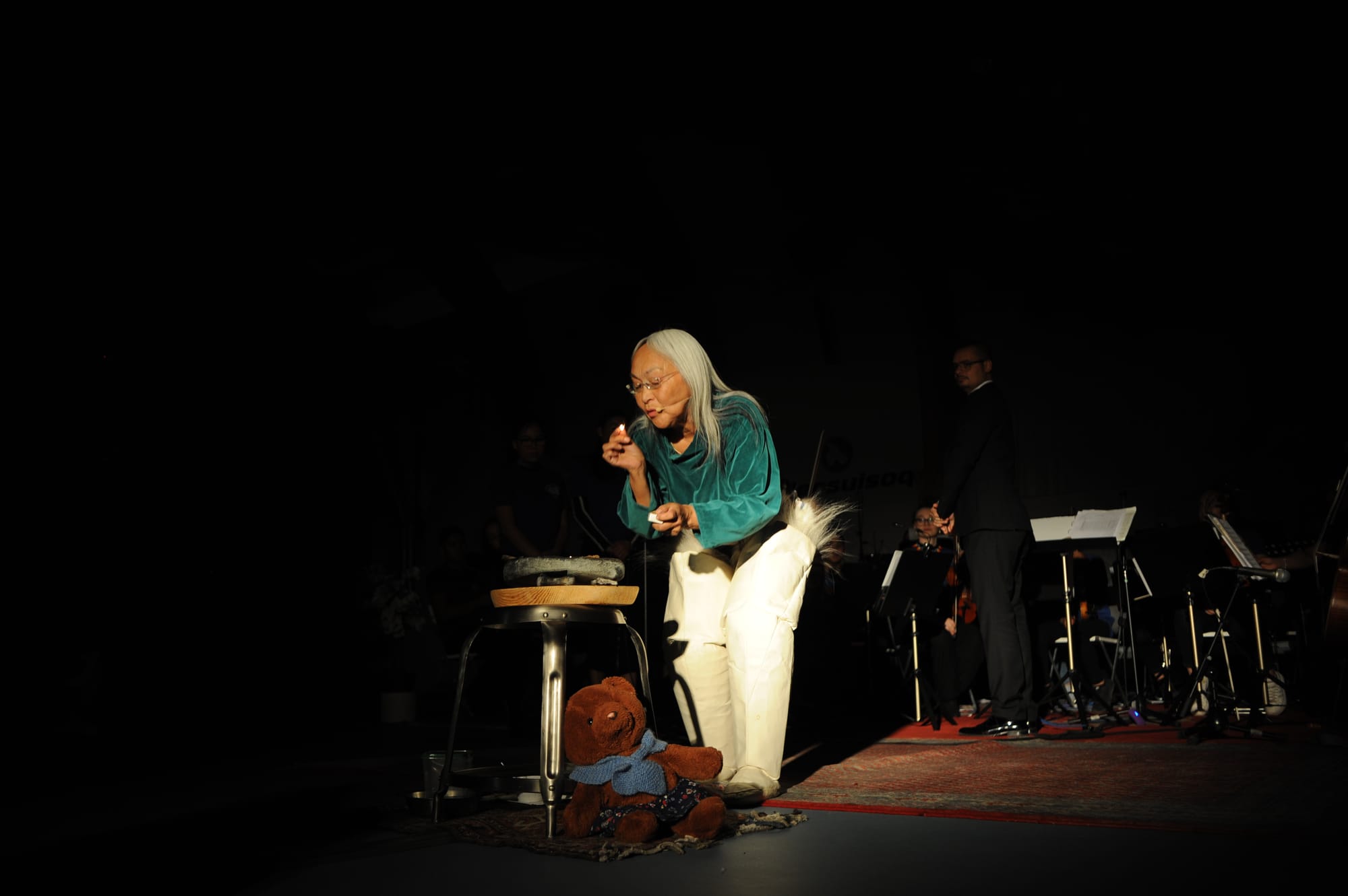 Gaz Zaa Lung steht in strahlend weißer Bärenfell-Hose auf der Bühne. Sie stammt aus dem hohen Norden Grönlands, aus der mythischen Thule-Region, wo man noch heute Eisbären vom Hundeschlitten aus jagt. Sie eröffnet die Jubiläums-Feierlichkeiten, indem sie eine Öllampe entzündet. Als Brennstoff dienen ausgelassenes Robbenfett, Hasendung und ein wenig Reisig. Mehr steht in der arktischen Tundra nicht zur Verfügung.