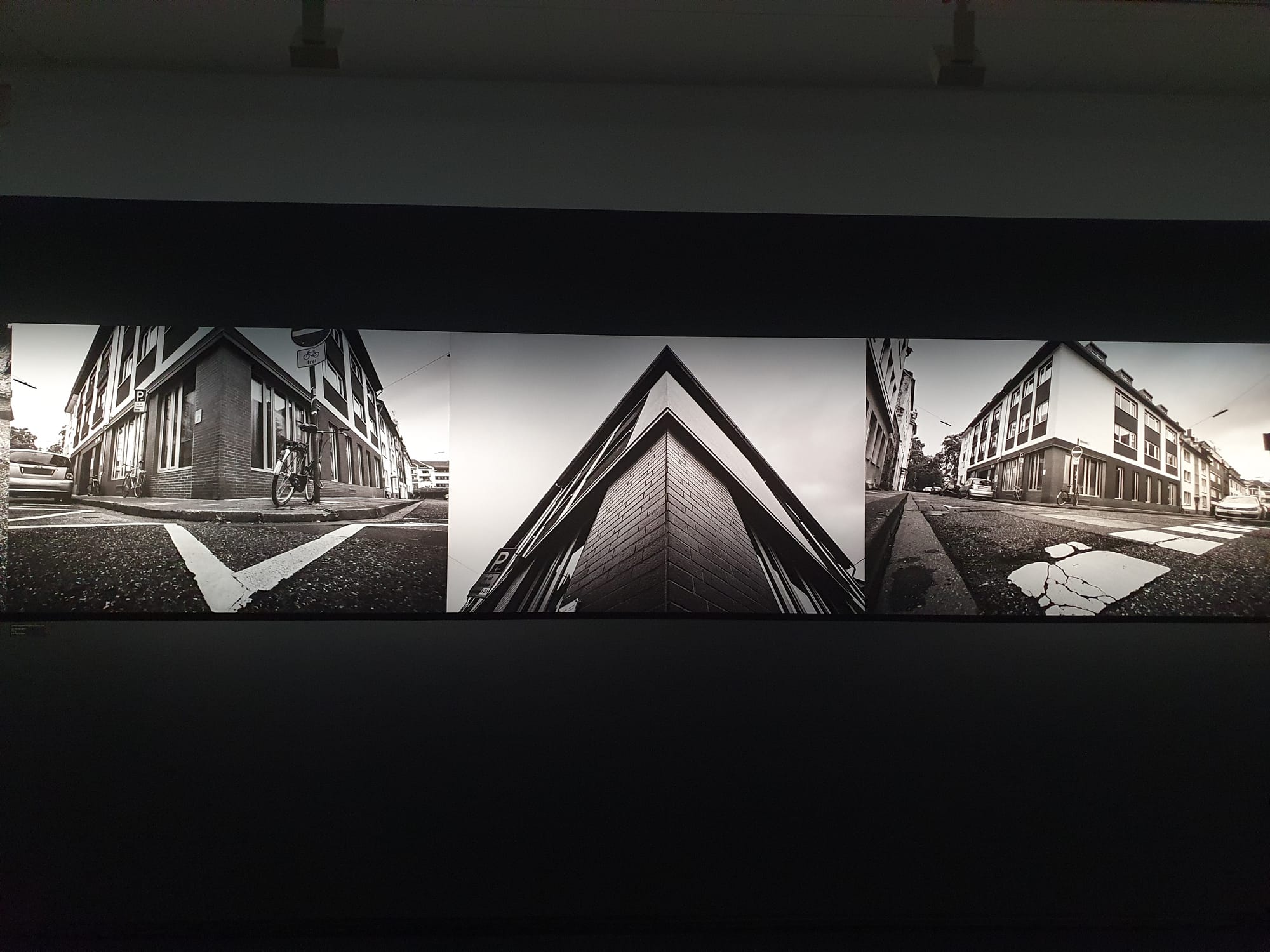 Jedem Tatort sind drei Fotos gewidmet. Alle Fotos der Ausstellung hängen direkt nebeneinander, ohne jeden Abstand. Diese bewegenden Triptychen laufen wie ein Fries rund um um den schwarzen Kubus. Alle Verbrechen erscheinen miteinander verwoben. Ein Mord geht in den anderen über. Man muss hier schon sehr genau hinschauen, wo der eine Tatort aufhört und der andere beginnt. Hätten die Ermittler bloß einmal so genau hingeschaut, dann hätte es weniger Opfer gegeben.