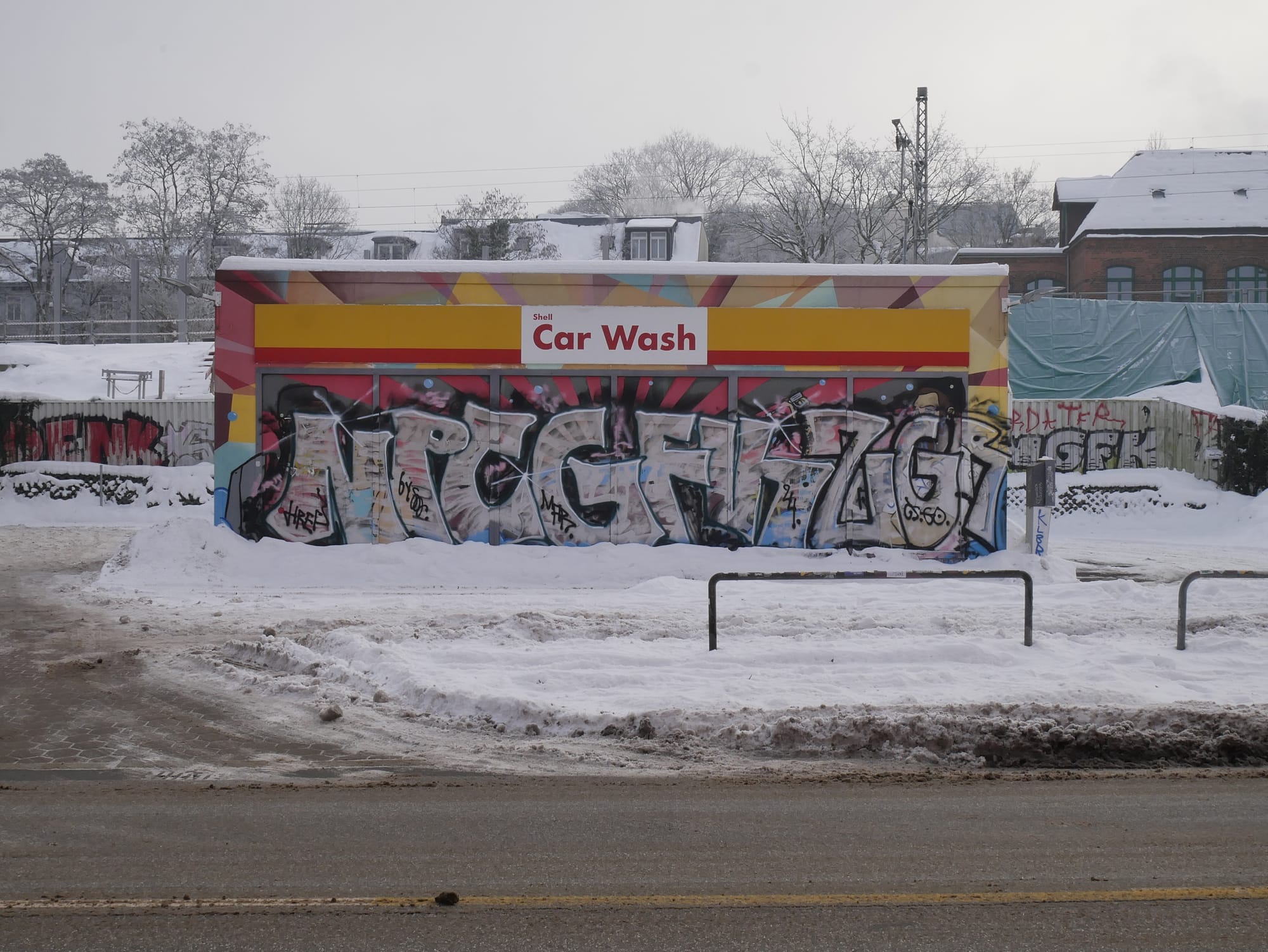 Bald mischte sich ein anderer Ton darunter. Ich hielt inne und schaute mich um. Durch die verschneiten Äste nahm ich ein breites, graues Band wahr.