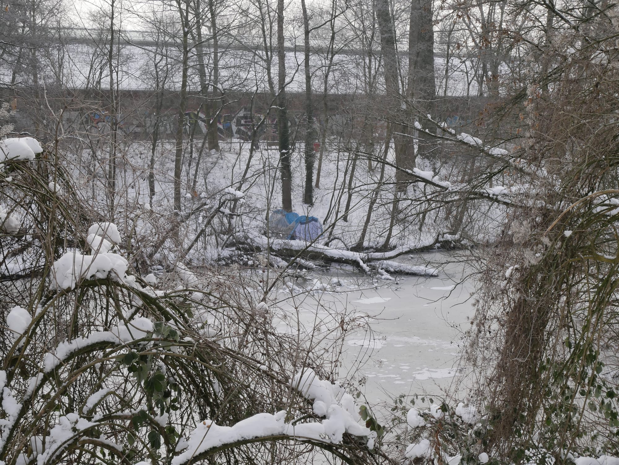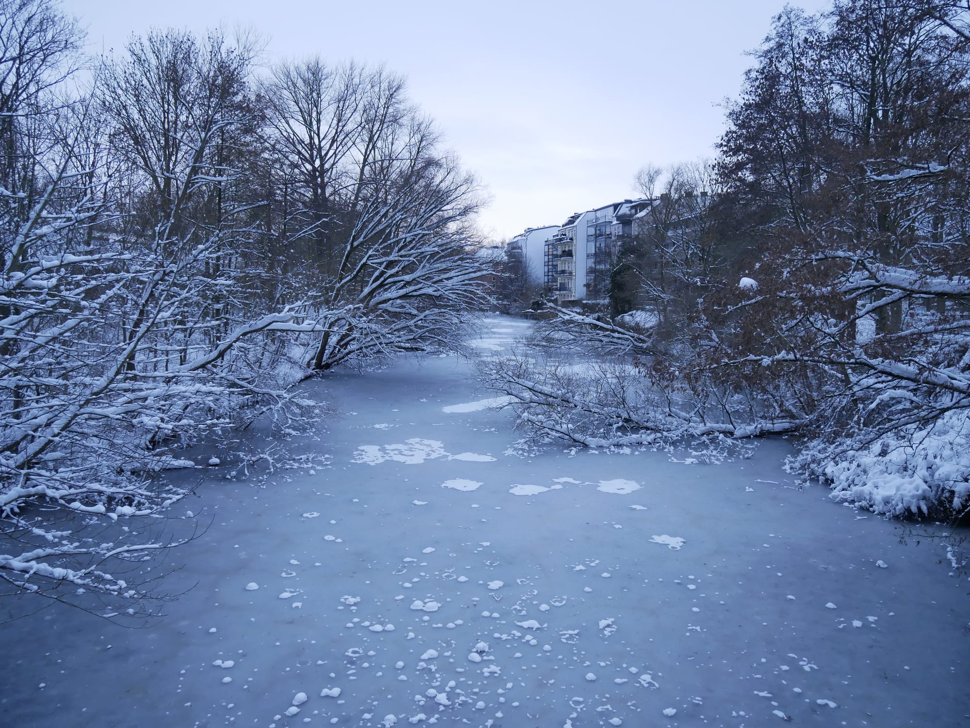 Schnee rieselte von den Ästen in meinen Kragen, das Dickicht tat sich auf, und plötzlich stand ich auf dem breiten Uferstreifen des gemächlich dahinströmenden Flusses. Rings um mich lagen große Eisbrocken verstreut.